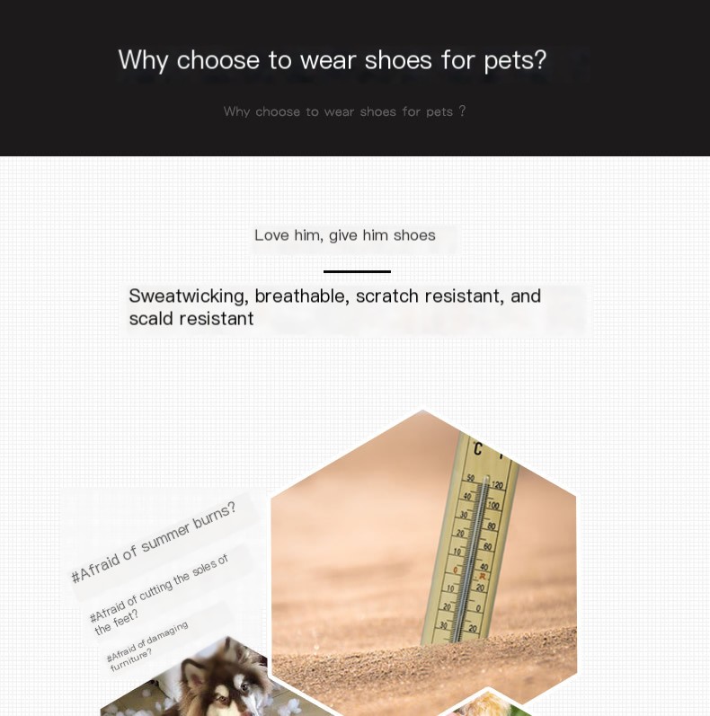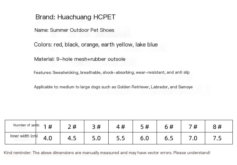 Our pet shoes come in a range of sizes from 1# to 8#, ensuring a perfect fit for dogs of all breeds. They feature a non-slip sole that provides excellent traction and stability, making them suitable for all terrains. Plus, their wear-resistant material guarantees durability, so your pup can play freely without the worry of wear and tear.